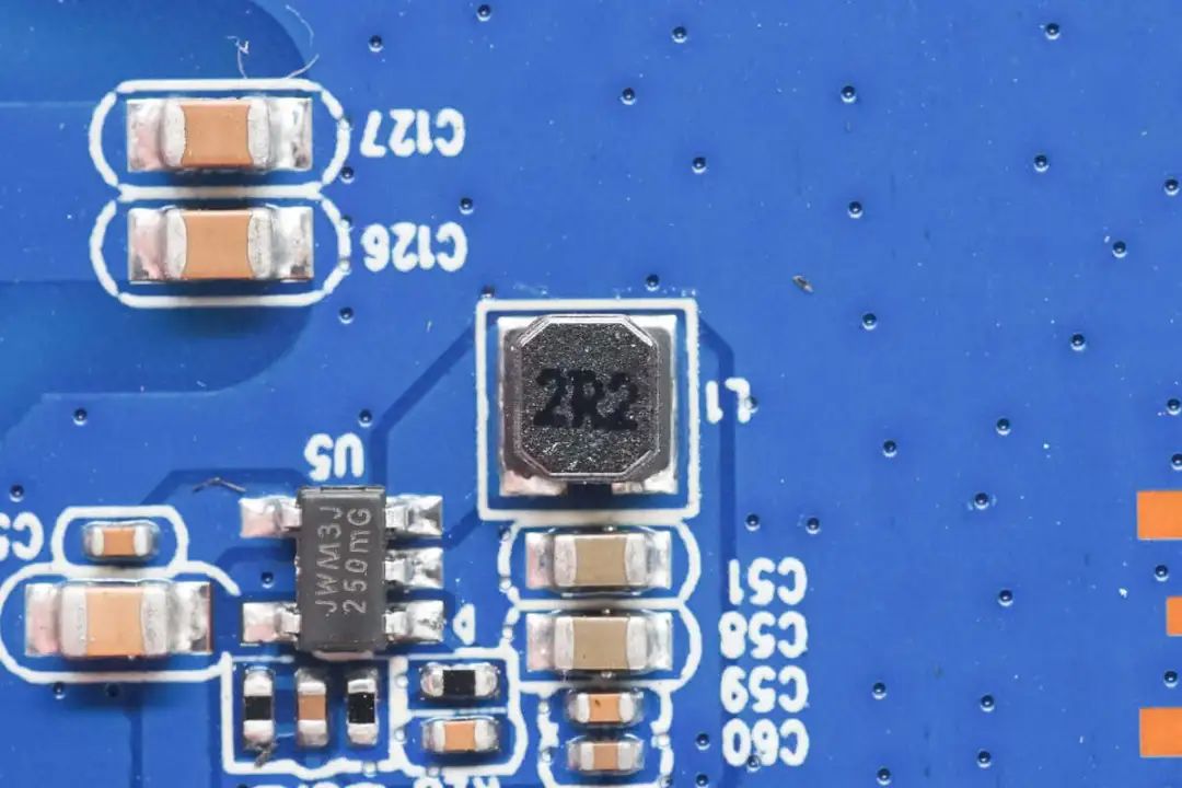 背面焊接一路降压芯片和降压电感,网络接口和网络隔离变压器均为过孔焊接固定,对应交换机芯片的位置过孔露铜散热。