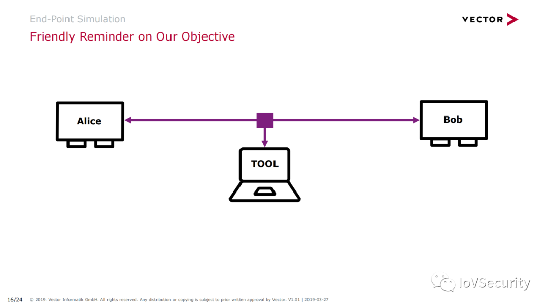 1. 分析应用层的问题时,我们需要关注消息或信号的解密过程,以确保信息的真实性。 2. 虽然可能存在信号被操纵的风险,但我们不需要修改实际ECU上的安全层,只需关注应用层面的分析。 3. 私有证书与工具的共享对于后续的数据分析至关重要。