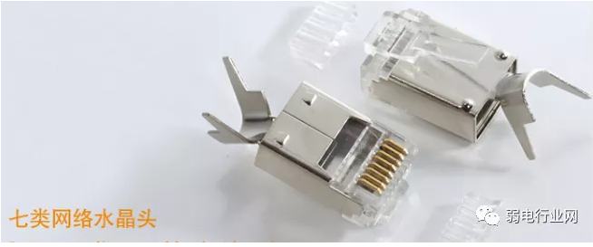 可以看到,七类网线水晶头,带有金属屏蔽外壳。因为7类线采用的是单对屏蔽,然后再总屏蔽的结构,所以七类水晶头是带屏蔽的,够更有效消除线对之间的串扰。