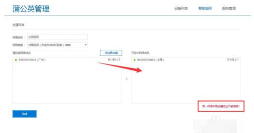 1、通过蒲公英智能组网功能,搭建虚拟局域网环境,实现异地间互联互通。