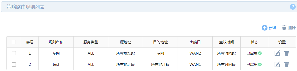 3. 检查是否开启了策略路由功能。对于需要同时连接外网和专网的情况,可以通过策略路由功能解决,访问专网服务器时选择专网线路转发,访问互联数据时从外网线路转发。