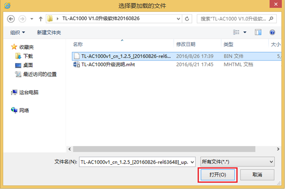 打开解压后的文件夹,选择bin类型的文件,点击打开,如下图: