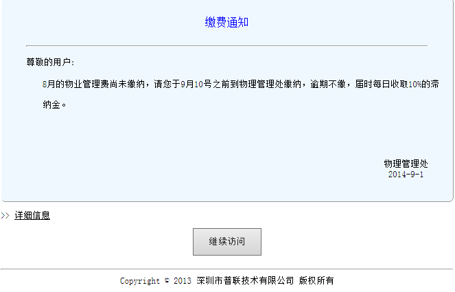 设置完成,当被公告用户浏览网页时,就会定时跳出此公告页面,如下图所示: