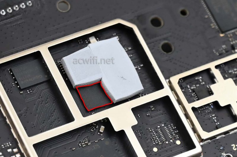 翻过来看主板背面,主要芯片都在这里了。直接打开所有屏蔽罩: