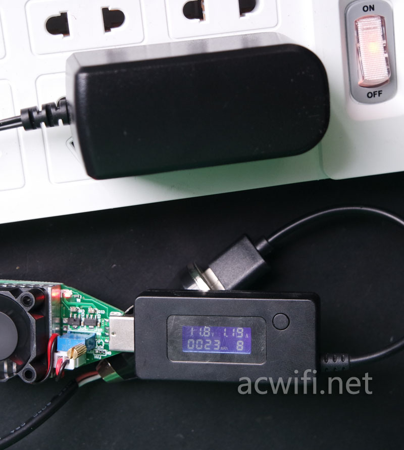而斐讯K1S的电源,也能输出超过标示的1A电流,实测能稳定在1.19A下运行,超过1.2A时会断电保护。
