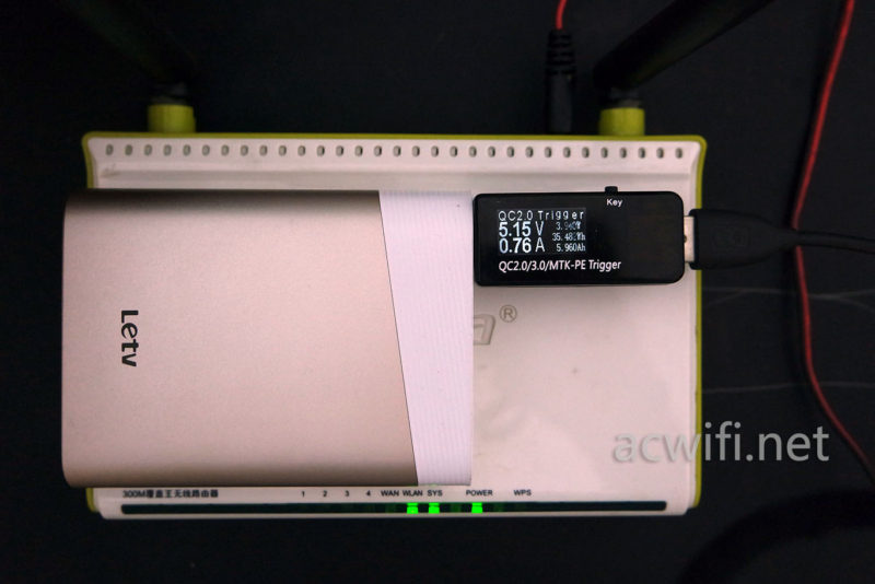 现手上有几款无线路由器,正好可以拿来做实测试验。充电宝是乐视13400快充,还有一个USB测试仪,可以诈骗出充电宝的快充电压,例如9V和12V;这样方便做试验。其实只要充电宝能支持有5V 2A的输出,都是可以的,可以应付市面上大多数的无线路由器,因为路由的功率多是4W左右。请继续看下面。