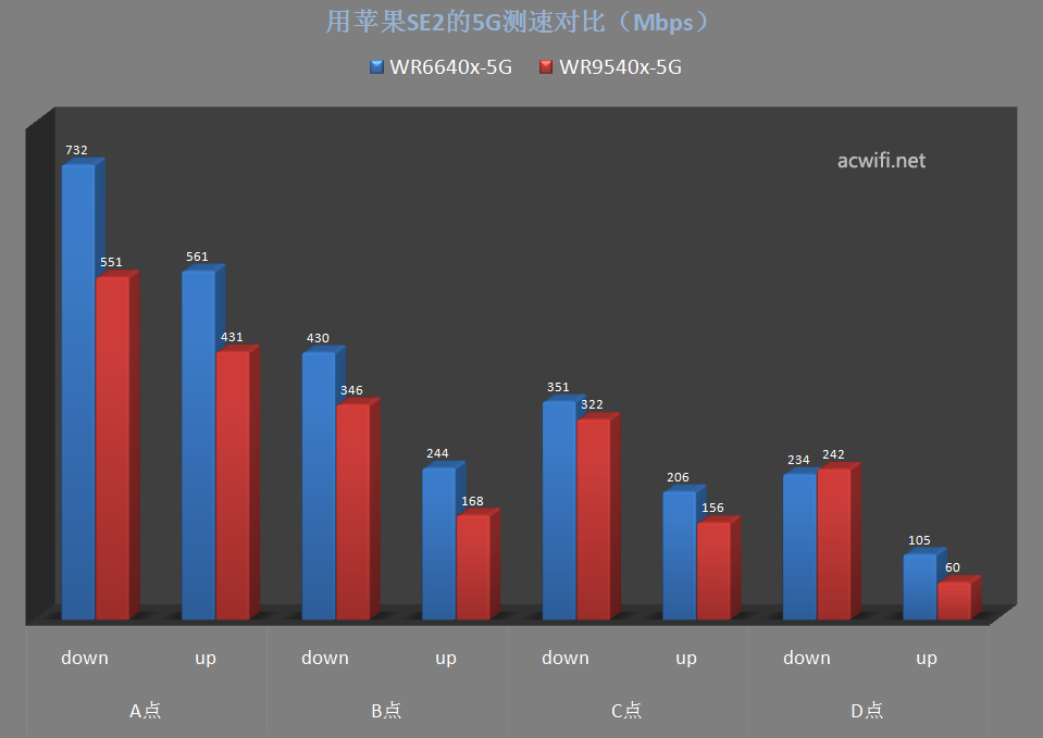 在四个位置里,WR6640X的5G速度都比WR9540X快。
