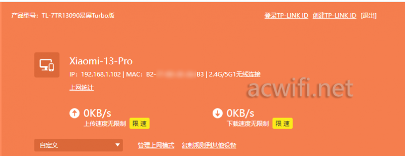 下图是7TR13090只用了2.4G+5G MLO的情况,显示小米13 Pro连接的无线频段有2个:2.4G和5G1