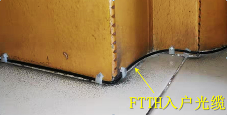 在FTTH入户光缆放装时,为了便于入户光缆成端,装维人员往往在光缆分纤箱及ONT(俗称“光猫”)处将FTTH入户光缆熔接上一小段尾纤,如下图所示。