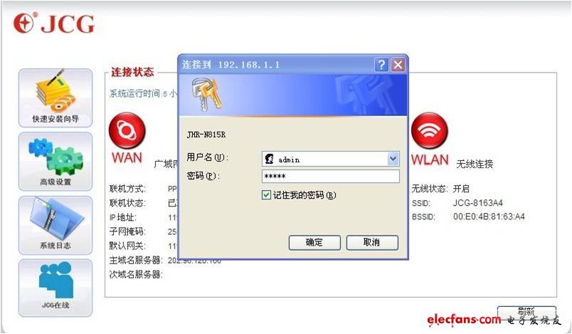 2,输入默认管理用户名和密码,用户名 admin, 密码admin 点确定