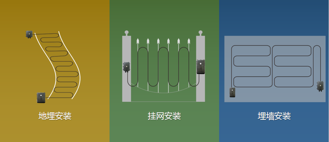 3. 安装方式:泄漏电缆有地埋式和依附式,振动光纤则主要有地埋、挂网、埋墙等方式。