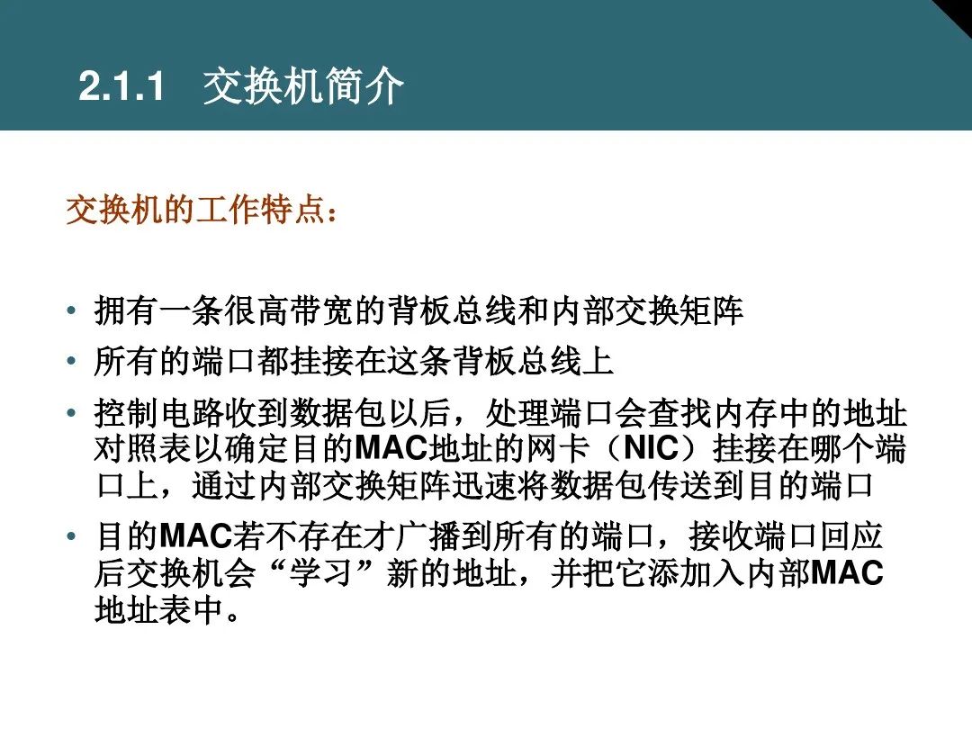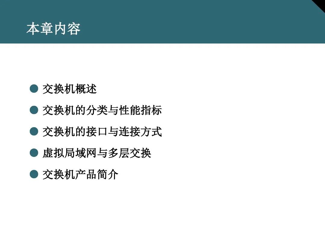 交换机基础知识详解,内容包括交换机概述、交换机的分类和性能指标、交换机的接口和链接方式、虚拟局域网和多层交换、交换机产品介绍等内容。
