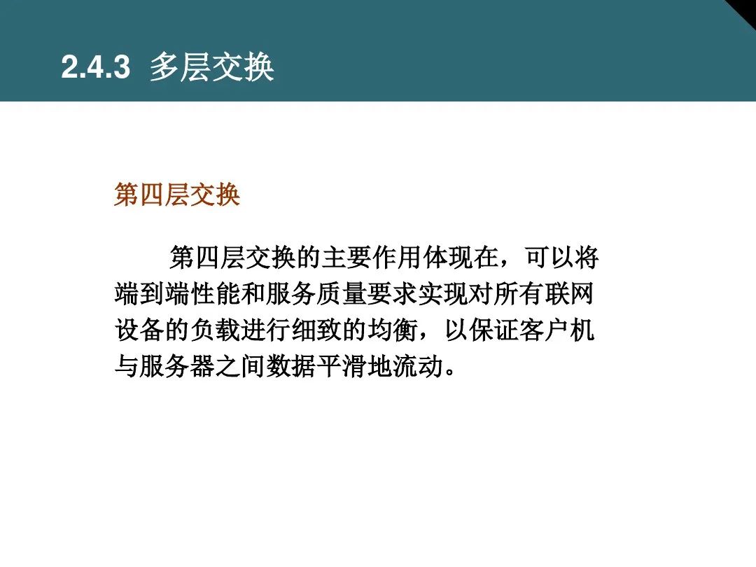多层交换技术是现代交换机的发展趋势,它结合了二层交换和三层路由的功能,能够在同一设备上实现数据的高速转发和路由选择。多层交换机广泛应用于大型网络和数据中心,提升了网络的性能和可靠性。