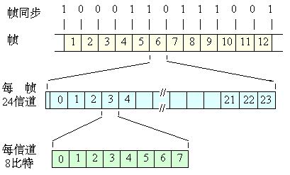 3.每帧由24个时间片(信道)和1位同步位组成。